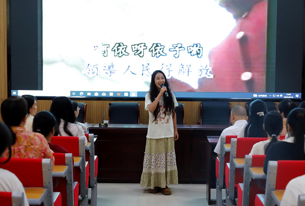 “家乡有支歌,一支难忘的歌。你唱过我也唱过,千家万户都唱过......”校园十佳歌手李敏一首民歌《浏阳河》拉开学院推普周活动序幕。悠扬婉转的歌声伴着标准的发音,让在场师生在享受音乐的同时,直观感受语言表达的艺术感染力。