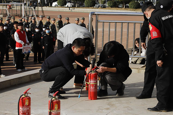 应急疏散演练后,进行了消防安全知识培训,消防救援人员现场示范灭火器的规范使用方法,组织师生代表上台实操演练,“手把手”指导大家掌握灭火技巧。