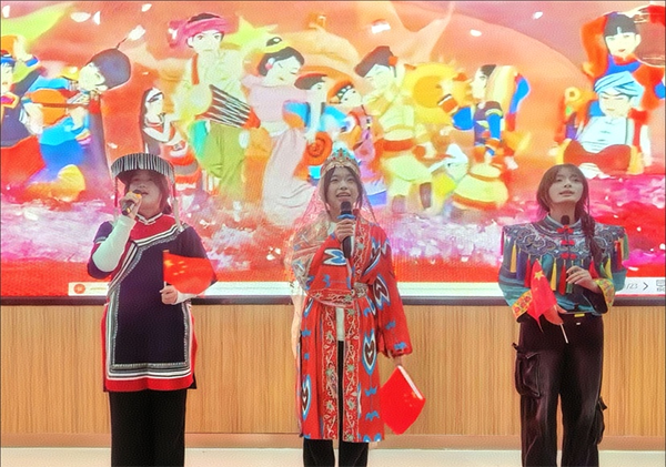 参赛选手紧紧围绕铸牢中华民族共同体意识这一主线,结合个人成长经历、民族故事与典型事迹,从不同角度阐述了对民族团结的深刻理解与实践感悟。来自24广告高技1班的壮族学生韦娟霞,以真挚的情感讲述了“56个民族服装千人秀”的生动场景,展现了各民族文化的多彩与共融;25计软技师班的参赛团队则创新表现形式,巧妙融入民族歌舞等才艺,生动演绎了各民族和谐共处的画卷。最终,22数媒高技班黄美玲、21广告技师班邹佳琪团队荣获本次大赛一等奖。