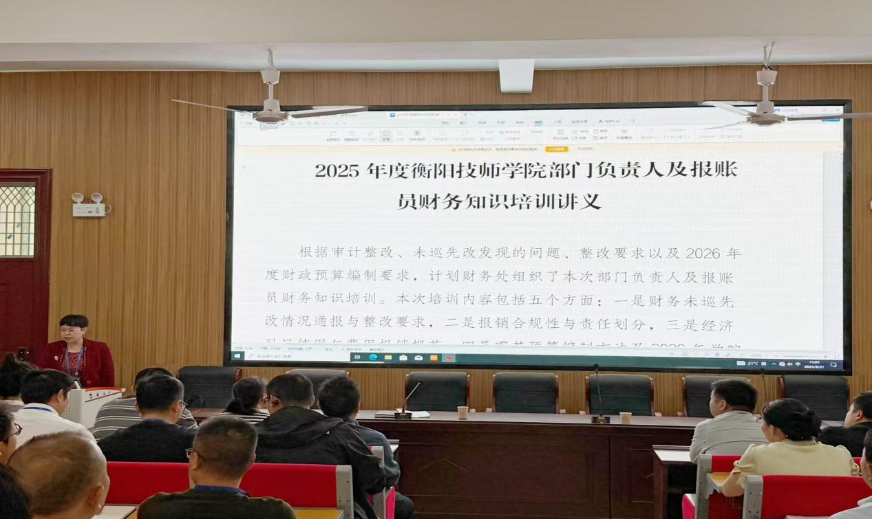 为深入贯彻落实审计整改及“未巡先改”工作要求,进一步提升各部门财务管理与内控意识,规范财经行为,保障学院各项事业健康发展,学院计划财务处联合党政办公室于2025年9月27日下午,在第一教学楼东头多媒体教室组织召开了2025年度衡阳技师学院财务知识讲座暨内部控制交流会。学院各部门负责人、报账员及招生片区负责人参加了本次会议。
