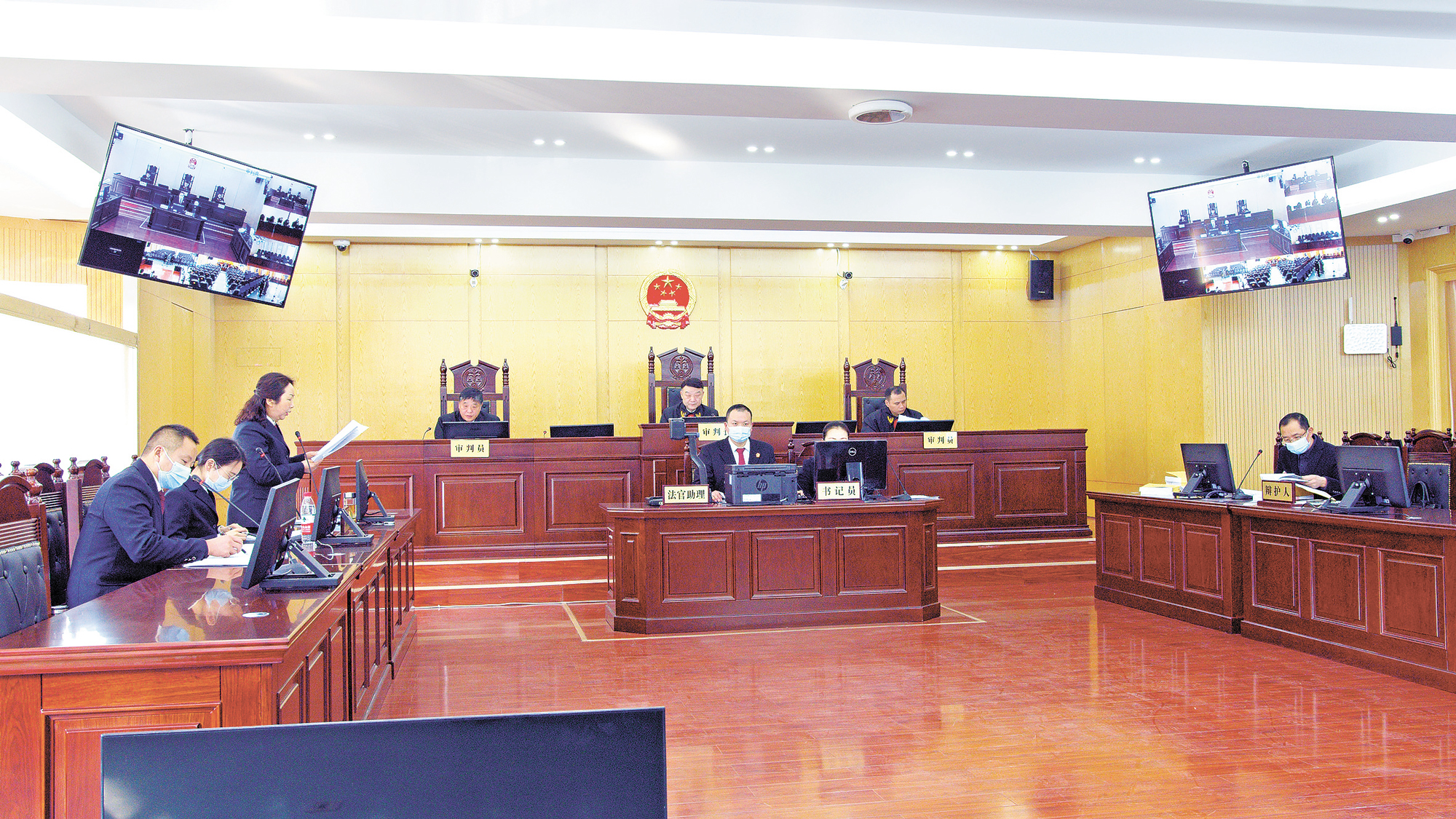 2022年2月25日,刘光海受贿、国有公司人员滥用职权、串通投标、巨额财产来源不明一案开庭审理,图为庭审现场。(随州市纪委监委供图)