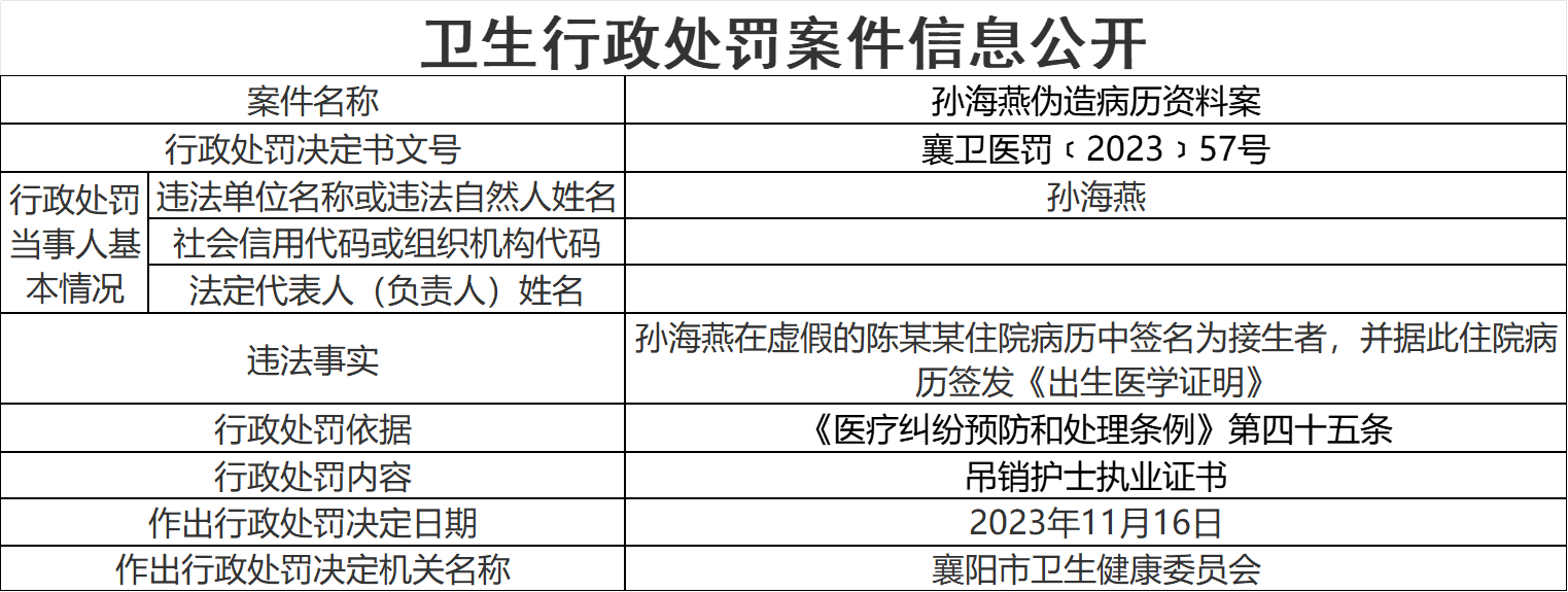 11月6日,网民举报襄阳健桥医院(襄城区陈侯巷169号,民营,法定代表人叶某芝,女,55岁)贩卖出生医学证明等问题后,襄阳市立即成立由市委、市政府主要领导任组长、相关市领导为各工作组负责人,市公安、卫健、纪检监察等部门组成的工作专班,从严从快、依法依规开展问题调查、案件侦办和追责问责等工作。