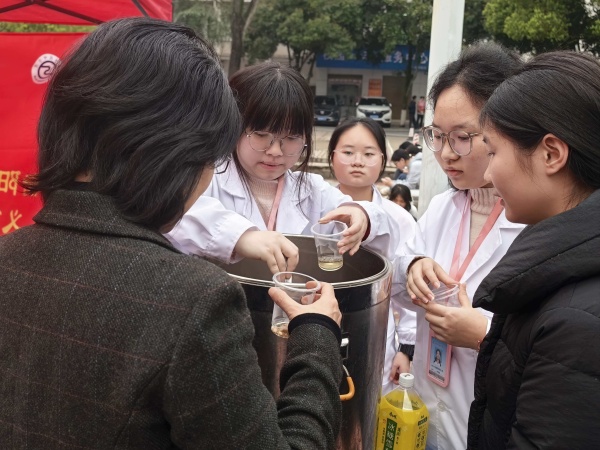 “这是春季养生茶,有玫瑰花、枸杞、黄芪,能美容养颜、健脾祛湿。”志愿者们将热气腾腾的养生茶递到大家手中。一杯杯温热的茶饮驱散春寒,拉近了彼此的距离。