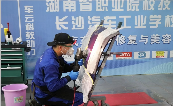 日复一日的刻苦训练,终在赛场上绽放光彩。2023年,肖雄首次参赛,便在衡阳市中职技能竞赛汽车车身涂装与美容赛项中斩获二等奖,这份荣誉让他备受鼓舞。他不骄不躁,针对比赛中暴露的不足加紧弥补,制定更严格的训练计划,不断提升操作速度与精度。