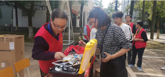 居民们就把家里搁置已久又舍不得丢的小家电拿来维修,志愿者们有条不紊的工作着,登记报修名单,仔细查找、分析每一件小家电存在的问题,积极处理检查出的问题。对无法修好的电器认真地说明损坏原因,提供维修建议。维修的同时,向居民们耐心地讲解家电使用和保养方法。20余件废旧家电在志愿者们的巧手下又“重获新生”,家电修复率达到80%。此次志愿者活动让居民在家门口就享受到学院带来的便利生活,深受居民的欢迎和好评。