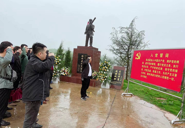 全体党员干部怀着崇高的敬意瞻仰了罗亮泗英雄雕像。大家整齐列队,集体向英雄鞠躬默哀、敬献花篮,表达敬仰和追思,并重温入党誓词。