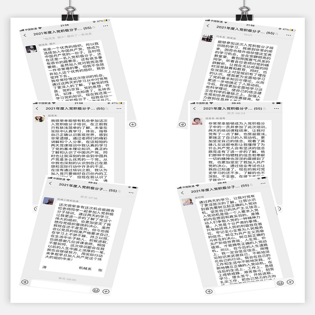 7名入党积极分子分别上台交流分享自己的入党初心,并结合电影党课谈了领悟感受;参训学员纷纷在微信群内表达培训的心得体会,用真挚且朴素的语言表达出对党的敬仰之情。