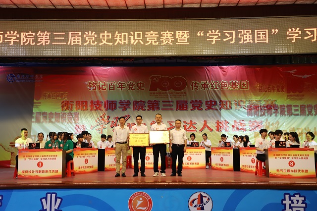 本网讯 为持续深化党史学习教育,激发学生对党史知识学习的热情,营造学习党史的浓厚氛围,衡阳技师学院在全院范围内开展了“铭记百年党史,传承红色基因”为主题的党史知识竞赛暨“学习强国”学习达人挑战赛。5月26日下午,党史知识竞赛总决赛在衡阳技师学院大礼堂举行。