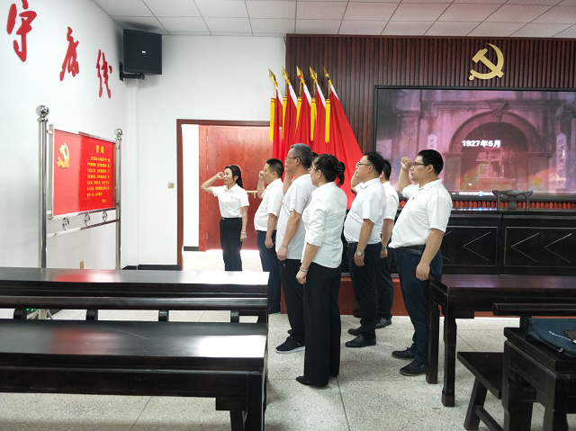 “我志愿加入中国共产党……”大家在萧石月故居里,高举右手,庄严宣誓,重温入党时的决心和信念。追忆革命精神,缅怀纪检监察战线革命先烈,使命感油然而生。