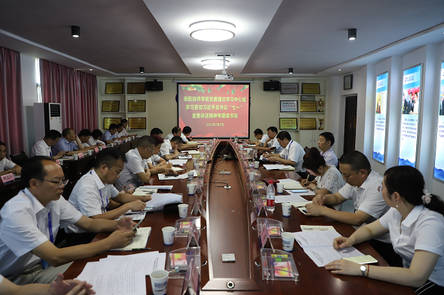 读书班采取收看收听庆祝中国共产党成立100周年大会实况、个人自学、专题辅导、研讨交流和现场教学相结合的方式进行。学院党委班子成员、各部门负责人、系党总支书记参加学习。
