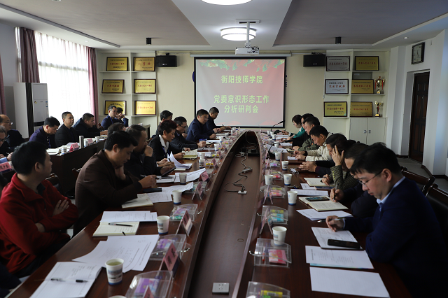本网讯 10月26日上午,学院在实训中心二楼会议室召开党委意识形态工作分析研判会。学院党委副书记、院长邱家才主持会议,在家党委班子成员、各部门、系(院)负责人、系党总支书记参加会议。