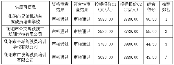 衡阳技师学院机动车驾驶员培训校企合作项目于2024年5月22日结束,现将中标结果公告如下: