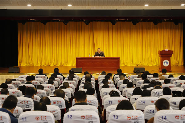 12月18日,学院党委书记肖春林在公共实训基地11楼报告厅为师生宣讲党的二十届四中全会精神。学院党委副书记、院长廖与飞主持。