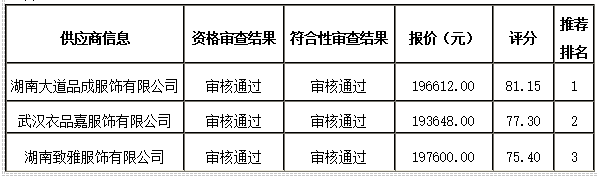 衡阳技师学院遴选2025级学生实训工装供应商公开招标采购于2026年03月05日结束,现将中标(成交)结果公告如下: