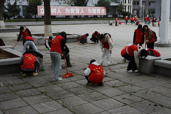 活动中,志愿者们分工协作、热情高涨,对文化广场及周边区域环境卫生进行全面清理。大家手持清洁工具,认真清扫地面垃圾、细致清理卫生死角,用实际行动美化校园环境。师生志愿者们不怕脏、不怕累,以饱满的热情,积极践行雷锋精神,充分展现了青年志愿者甘于奉献、勇于担当的精神风貌。