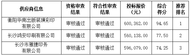 衡阳技师学院2026年度印刷服务采购项目于2026年4月7日结束,现将中标结果公告如下: