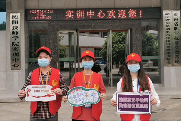本网讯 2022年4月12日,信息与生物技术系党总支积极响应学院疫情防控工作相关要求,结合系部专业特点组织开展疫情防控志愿服务活动。志愿者们手持志愿者和广告设计专业学生手绘的宣传标语牌,站在教学楼前、宿舍、校园超市、食堂这些志愿服务岗值班,进行文明劝导、宣传疫情防控知识,成为校园中一道靓丽的风景线。