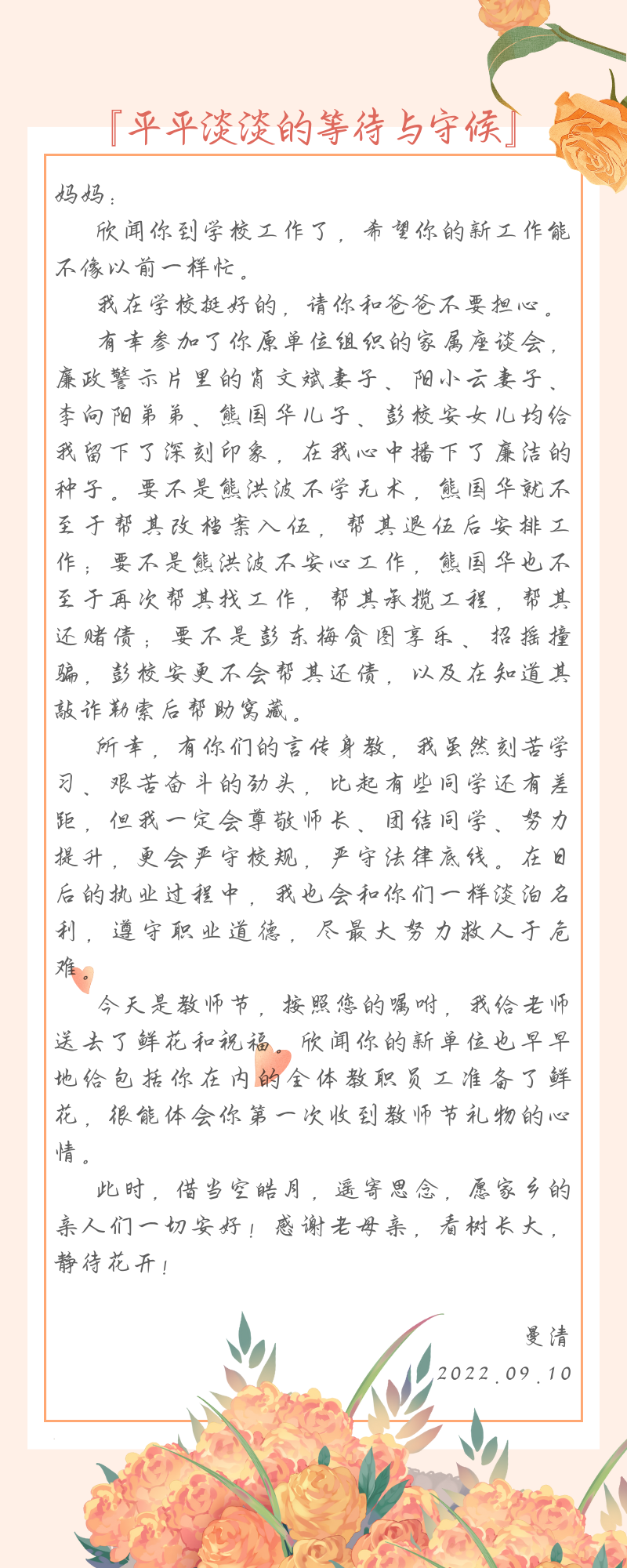 清廉学校——书记、院长评家书(五)|纪委书记王晨旭同志评家书:义无反顾的长长久久