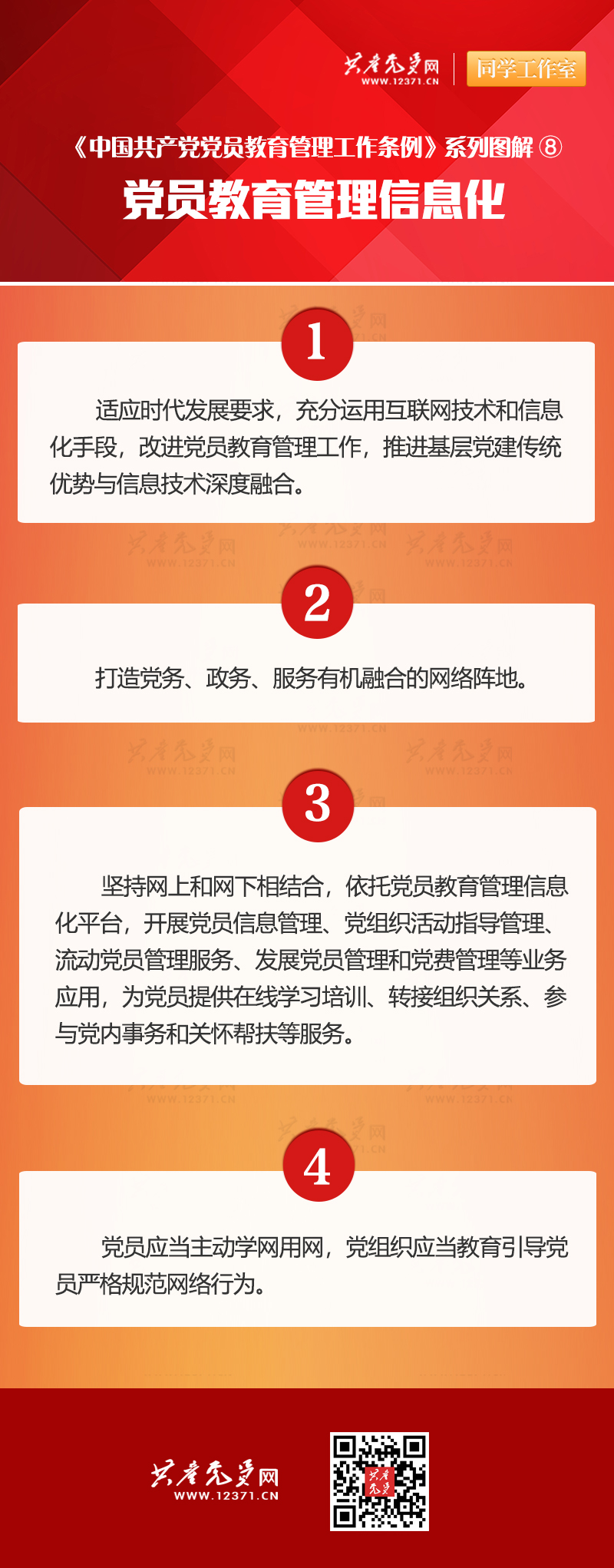 第三十五条 适应时代发展要求,充分运用互联网技术和信息化手段,改进党员教育管理工作,推进基层党建传统优势与信息技术深度融合,不断提高党员教育管理现代化水平。