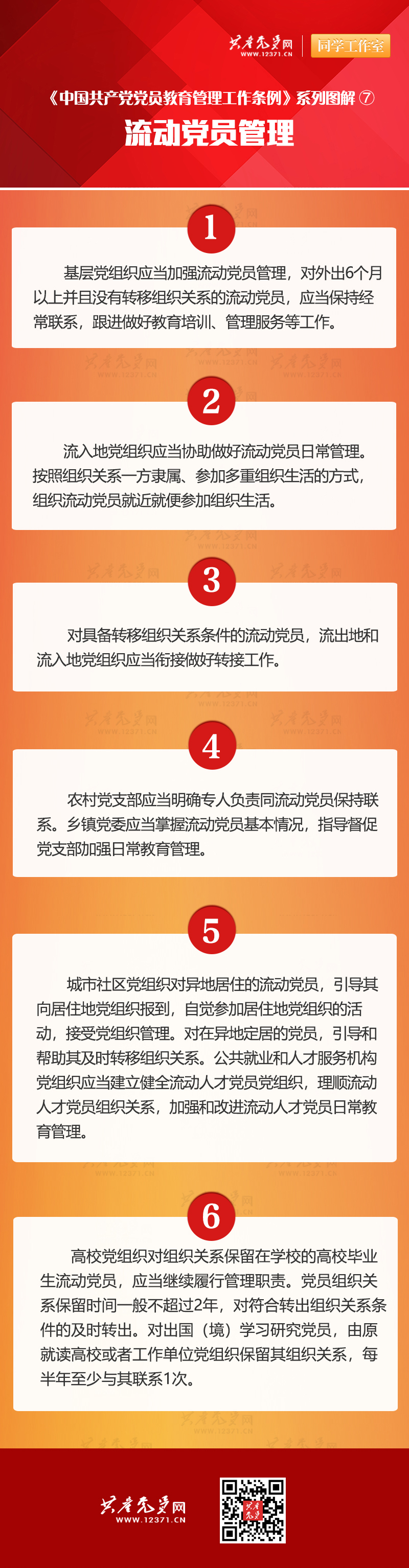 第三十二条 基层党组织应当加强流动党员管理,对外出6个月以上并且没有转移组织关系的流动党员,应当保持经常联系,跟进做好教育培训、管理服务等工作。在流动党员相对集中的地方,流出地党组织可以依托园区、商会、行业协会、驻外地办事机构等成立流动党员党组织。