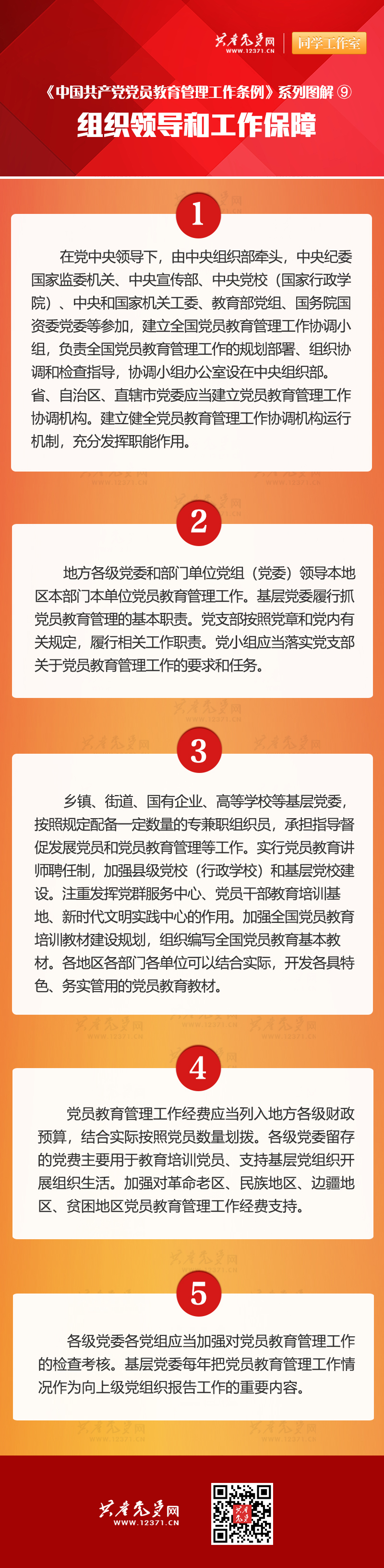第三十九条 在党中央领导下,由中央组织部牵头,中央纪委国家监委机关、中央宣传部、中央党校(国家行政学院)、中央和国家机关工委、教育部党组、国务院国资委党委等参加,建立全国党员教育管理工作协调小组,负责全国党员教育管理工作的规划部署、组织协调和检查指导,协调小组办公室设在中央组织部。省、自治区、直辖市党委应当建立党员教育管理工作协调机构。建立健全党员教育管理工作协调机构运行机制,充分发挥职能作用。