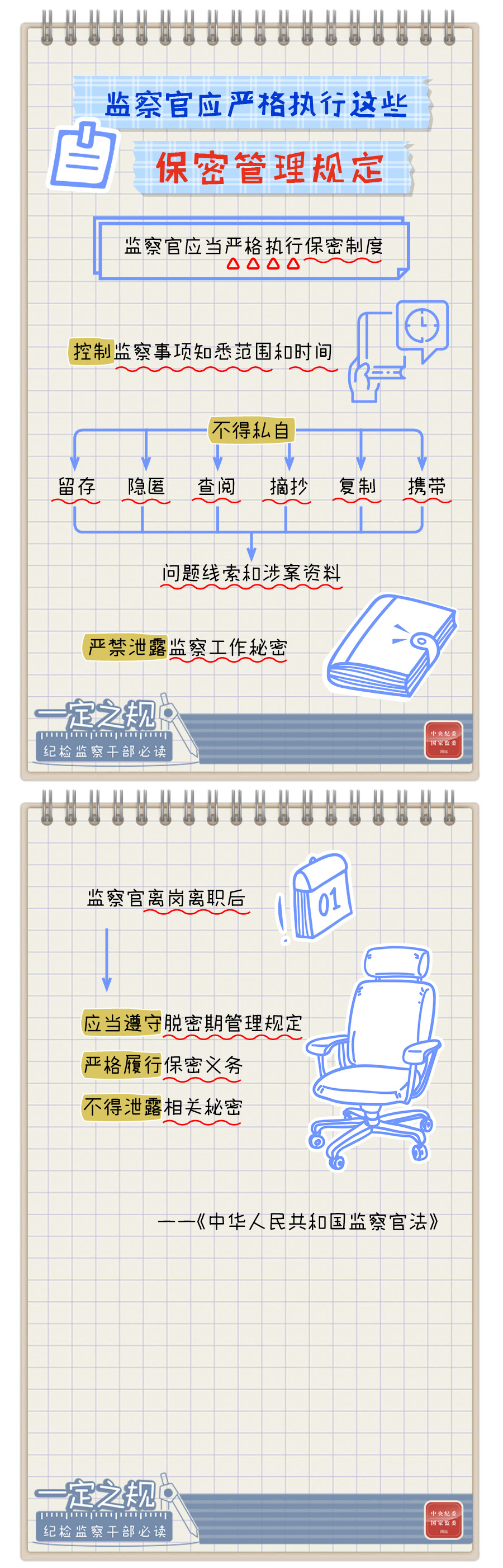 第四十八条 监察官应当严格执行保密制度,控制监察事项知悉范围和时间,不得私自留存、隐匿、查阅、摘抄、复制、携带问题线索和涉案资料,严禁泄露监察工作秘密。