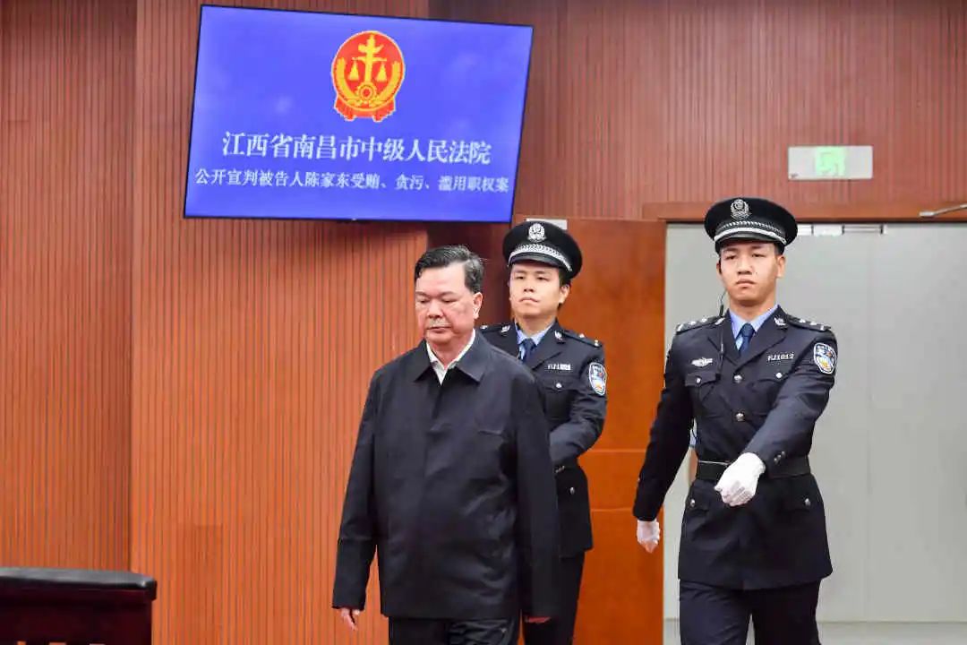 2023年9月5日,江西省南昌市中级人民法院公开宣判福建省厦门市人大常委会原主任陈家东受贿、贪污、滥用职权一案,对被告人陈家东以受贿罪判处无期徒刑,剥夺政治权利终身,并处没收个人全部财产,以贪污罪判处有期徒刑七年,并处罚金人民币三十万元,以滥用职权罪判处有期徒刑八年,决定执行无期徒刑,剥夺政治权利终身,并处没收个人全部财产;对查封、扣押在案的犯罪所得财物予以追缴,贪污、滥用职权部分发还被害单位,受贿部分上缴国库,不足部分,继续追缴。