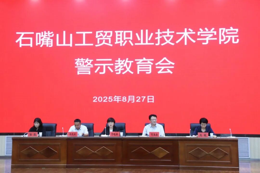 此次警示教育大会既是学院落实全面从严治党要求的具体实践,也是推动师德师风建设的重要抓手。下一步,石嘴山工贸职业技术学院将持续完善廉政教育长效机制,常态化开展警示教育,以严明的纪律、优良的作风,为培养高素质技术技能人才、服务教育强国建设提供坚强保障。 石嘴山工贸职业技术学院20250829 19:13