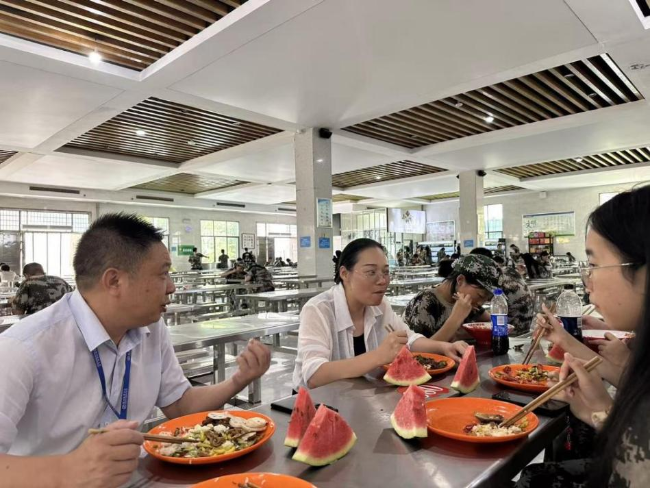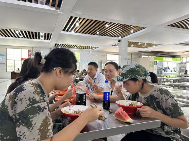 座谈结束后,庞海英院长与朱清如书记一同来到学生食堂,与少数民族同学们共进午餐。“你们平时喜欢吃什么口味的菜?食堂的菜品搭配是否符合饮食习惯?有没有需要特别注意的口味禁忌?”朱清如书记走到餐台前,一边为同学们添菜,一边细致询问饮食适应情况。