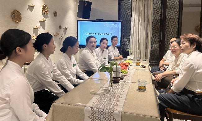 旺辉公司目前有6名实习生,主要从事养生师和前台接待等工作。企业通过严格的岗前隔离培训、建立实习生管理群、定期通报工作及考核评比情况等举措,实现精细化管理。座谈会上,25年6月入职的实习生们反映虽实习时间不长,但在微笑服务、气质塑造、语言表达等方面进步显著。23级健康服务与管理中技班学生王雨菲说:“企业的严格管理和学校的持续关怀,让我在掌握技能的同时,学会了以更积极的状态面对工作和生活。”