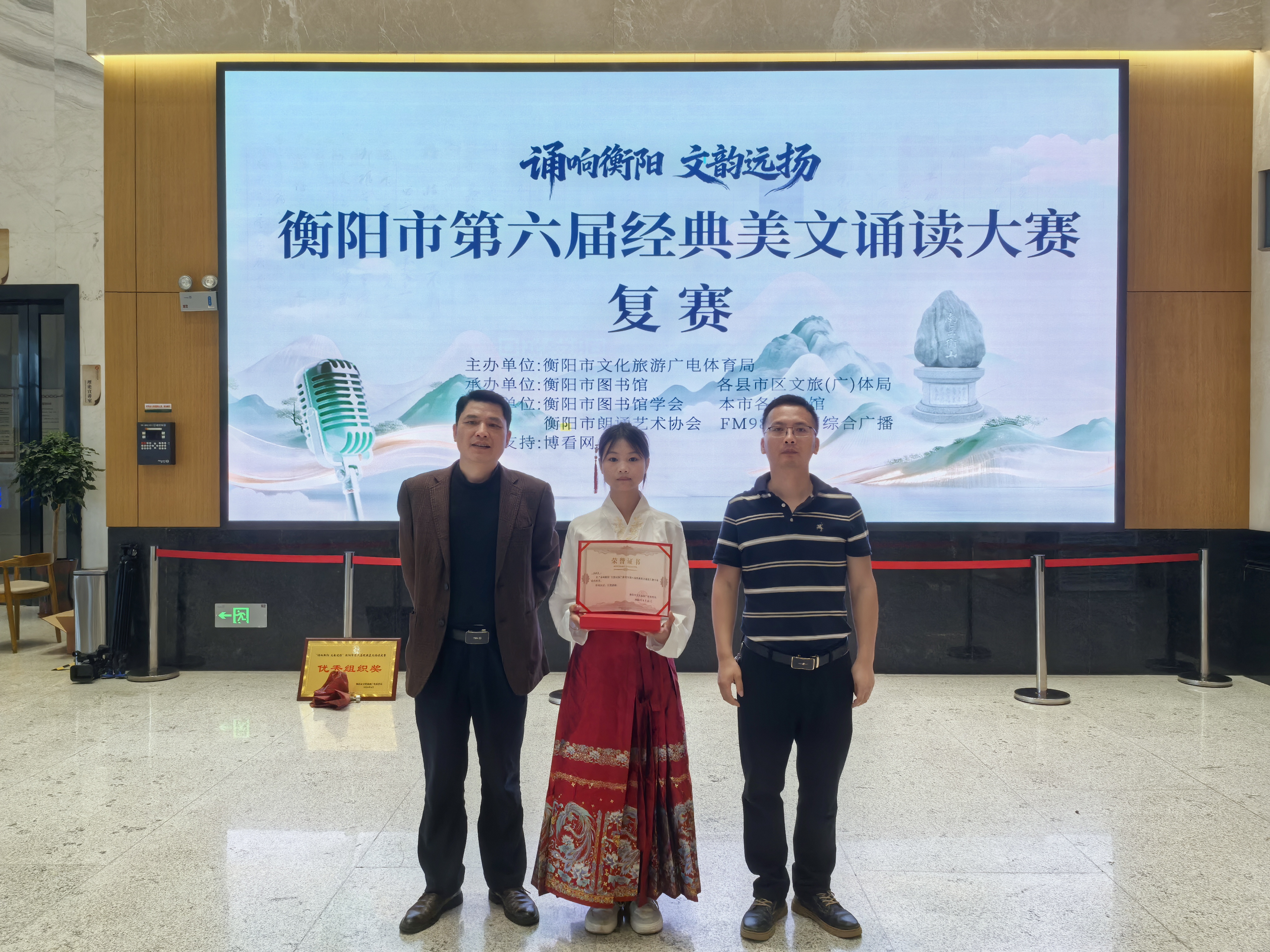 本次比赛由衡阳市文旅广体局主办,参赛选手以衡阳市各校教师、机关单位工作人员为主,整体水平高、竞争激烈。面对实力强劲的对手,凌羽涵同学从容自信、声情并茂,充分展现了扎实的语言功底与良好的精神风貌。