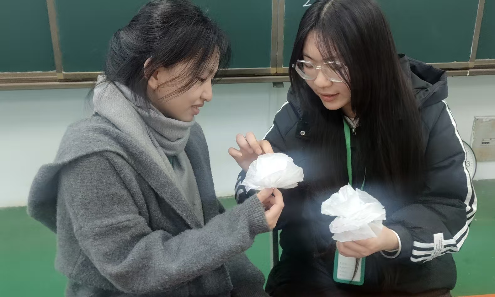 活动前夕,同学们通过亲手制作祭奠英烈用的纸花表达敬意。教室里安静肃穆,同学们神情专注地翻折纸张。有的因折痕不齐主动重来,有的反复调整花瓣角度力求完美。一朵朵纸花承载着对革命英烈的无限哀思与崇高敬意。