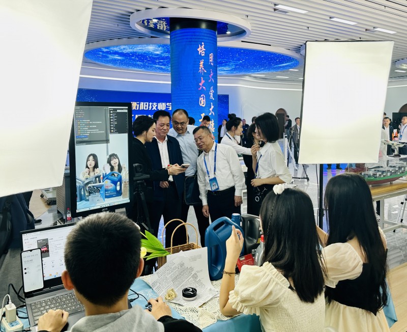 上午10时30分,在院领导的陪同下,技能文化节展厅迎来的第一波客人,他们是来自衡阳市政府相关的领导以及衡阳各县区知名企业领导。各展台顿时热闹非凡,有讲解员解说的声、有参观者的咨询、有直播平台的互动、有现场才艺的展示,一时间将技能文化节推向了高潮。有乡村振兴学院现场制作精美小礼品、也有智能制造学院为参观者现场演示的3D打印技术;有信息工程学院现场的服装设计、也有经贸旅游学院的茶艺展示;有交通工程学院的现场的发动机拆装比武、有电气工程学院的小蛮腰灯光秀、还有全场最潮的现代物流学院的直播带货。