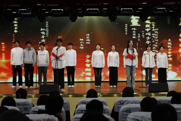 学生代表齐声朗诵《少年中国说》(配图)