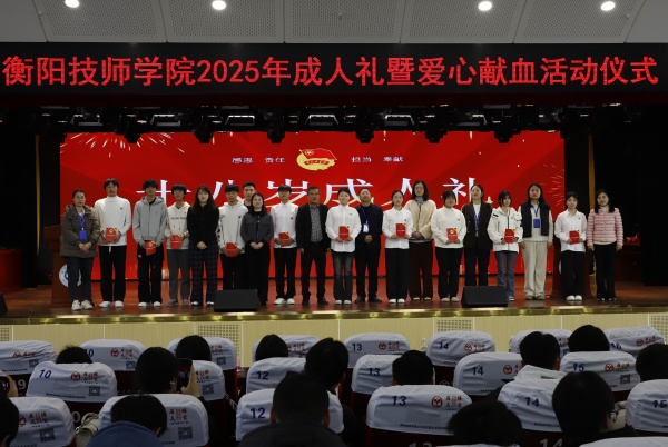 十八而志,践行青春誓言;不负韶华,立志扬帆远航。12月10日下午,衡阳技师学院“感恩·责任·担当·奉献”成人礼暨爱心献血仪式在学院公共实训基地11楼报告厅隆重举行。学院领导陈石义、团委书记刘璐及各二级学院团总支书记、十八岁青年学子及家长代表共300余人共同见证这一意义非凡的时刻。