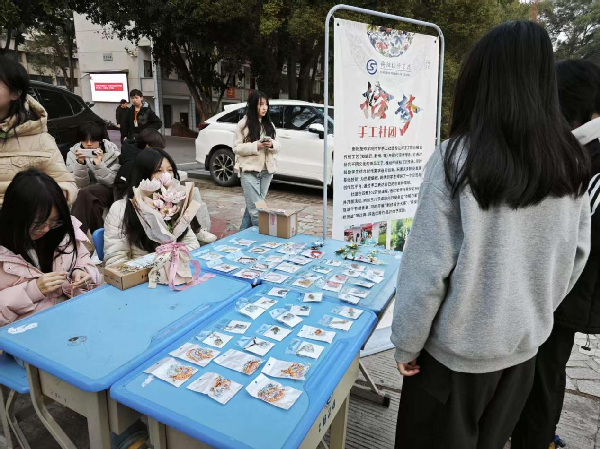 活动现场,社员们精心制作的编织小饰品琳琅满目:精致小巧的编织挂饰、简约别致的手链……一件件作品配色鲜艳、做工细腻,尽显手工编织的独特韵味。
