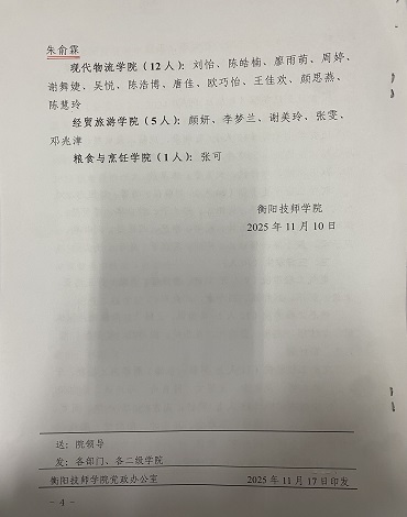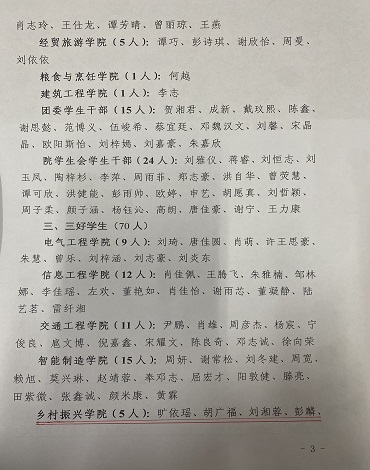 三、三好学生:旷依瑶(2023级畜牧兽医中技班)、胡广福(2024级数控对口升学班)、刘湘蓉(2024级会计对口升学1班)、彭麟(2024级畜牧兽医对口升学班)、朱俞霖(2024级幼儿保育对口升学班)。