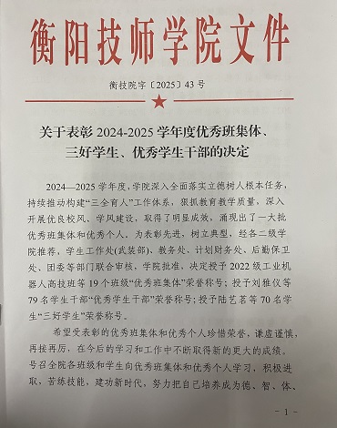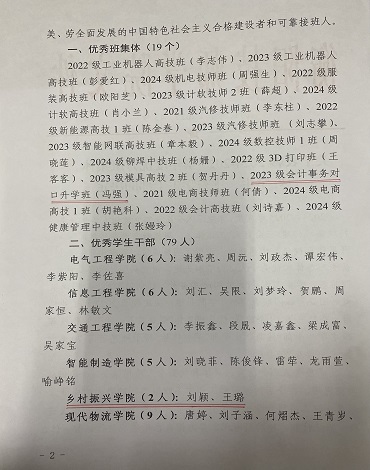 2024-2025学年度我院有以下班级和学生荣获衡阳技师学院校级荣誉称号,现特向乡村振兴学院和家长报喜!!!