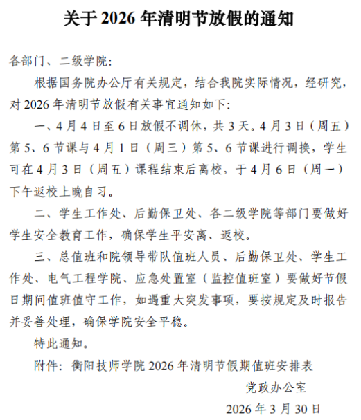 关于2026年清明放假的通知