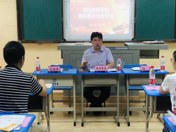 为进一步提升组织委员工作能力和水平,增强基层党组织组织力,按照《衡阳市贯彻落实<2019—2023年全国党员教育培训工作规划>的实施方案》要求,7月7日,在实训中心二楼录播室召开2020年党(总)支部组织委员业务培训会。学院党委委员、组织人事处处长欧阳智勇出席会议并讲话。